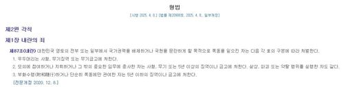 3. 법제처 국가법령정보센터 형법 제87조(내란) - https://www.law.go.kr/lsSc.do?query=형법#undefined
