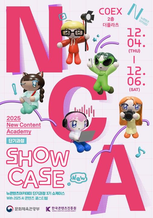 문화체육관광부와 한국콘텐츠진흥원은 뉴콘텐츠아카데미 단기과정 3기 쇼케이스를 4일부터 6일까지 서울 코엑스에서 열리는 'AI 콘텐츠 페스티벌 2025'에서 선보인다고 3일 밝혔다.