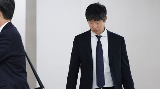 ▲ 후원사로부터 거액의 금품을 수수한 혐의를 받는 프로야구 KIA 타이거즈의 김종국 전 감독이 4일 오후 서울 서초구 서울중앙지법에서 열린 1심 선고 공판에 출석하기 위해 법정으로 향하고 있다.