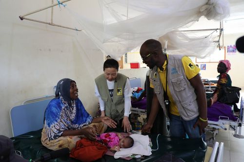 지난 6월 국제구조위원회 홍보대사 오민애 배우가 케냐 카쿠마 난민캠프 내 유일한 종합병원인 아무사이트 병원을 방문한 모습 [국제구조위원회 제공. 재판매 및 DB금지] |