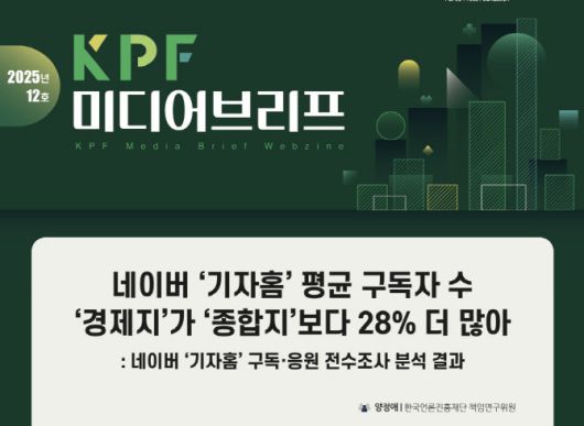 이번 조사는 재단 미디어연구센터가 2025년 5월부터 9월까지 기자홈 전수 데이터를 수집해 분석한 보고서(KPF 미디어브리프 2025년 12호)에 담겼다.