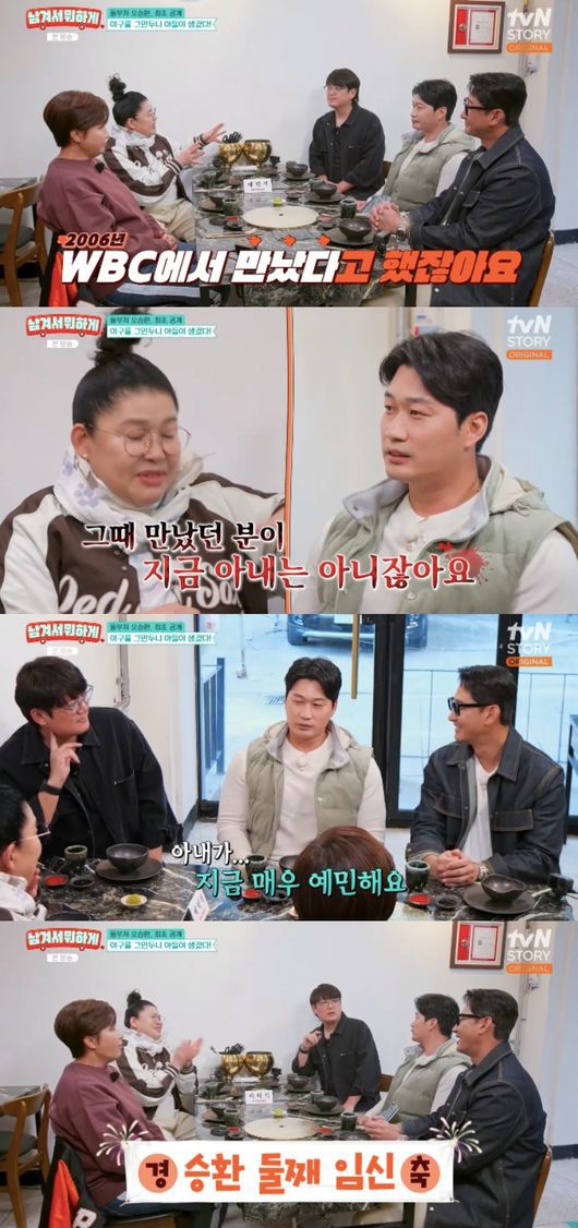 그러자 오승환은 “아내가 지금 매우 예민하다. 제가 처음 말씀드리는 건데 지금 배에 2세가 생겼다”라며 깜짝 둘째 임신 소식을 전했다. 이를 들은 박용택은 “은퇴둥이네”라고 했고, 이영자는 “정말 축하드릴 일이다”라고 축하했다.