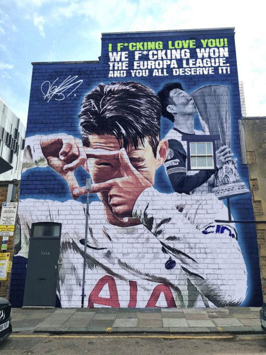 이 바람을 토트넘이 들어준 가운데, 토트넘 팬들은 구단에 40년 만에 유럽 대항전 트로피를 안겨준 주장 손흥민을 위해 벽화 작업을 진행 중이다.