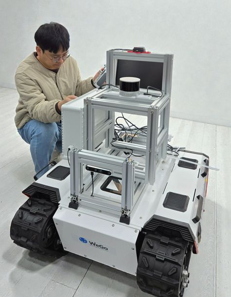 ETRI 연구진이 개발한 모바일로봇 주행 알고리즘을 실험하고 있다.[ETRI 제공] |