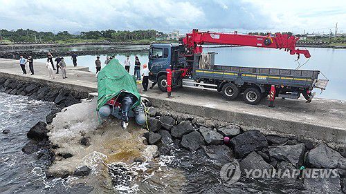 중국서 밀입국자 6명 태우고 제주 도착한 고무보트 |