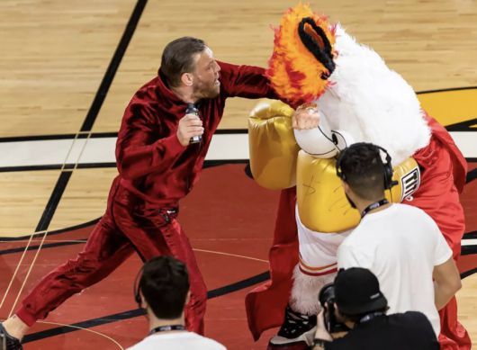 물론 맥그리거는 NBA 결승전 코트에서 마스코트 ‘버니’에게 펀치를 날려 논란을 만들기도 했다. 하프타임 중 팬들 앞에 소개됐는데, 복싱 글러브를 낀 버니와 쇼 연출 상황에서 펀치를 가해 마스코트를 쓰러뜨렸다. 그러나 바닥에 넘어진 마스코트를 또 가격해 인형탈 속 연기자가 의료 치료를 받아야 했다는 보도가 나왔다. 글로벌 스포츠 매체 ‘디 애슬레틱’에 따르면 해당 남성은 병원으로 이송됐다고 한다.