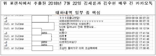 이에 유족은 “위 카카오톡 캡처사진이 김새론과 김수현 배우 간 카카오톡 대화내역임을 입증하기 위하여 포렌식에서 추출한 카카오톡 대화내역 일부를 공개한다. 이 자료에 따르면 해당 대화내역은 2018년 4월 9일에 있었던 것이고, 김새론이 2018년 4월 12일에 위 대화내역을 캡처한 것으로 보입니다”라고 했다.