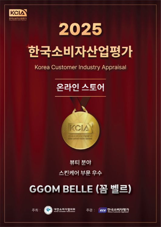 [이데일리 이윤정 기자] 주식회사 씨엔케이컴퍼니 글로벌 더마코스메틱 브랜드 꼼벨르(GGOM BELLE)는 ‘2025 한국소비자산업평가(KCIA)’에서 온라인 스토어 부문 – 뷰티 분야 스킨케어 우수 브랜드로 선정되었다고 4일 밝혔다.