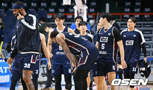 부산 KCC 선수들이 안양 정관장에 72-77로 패한후 아쉬워하고 있다. 2025.12.04 / foto0307@osen.co.kr