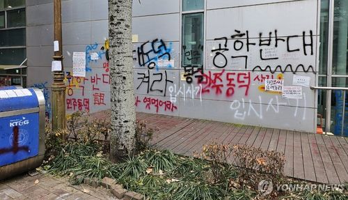 동덕여대 공학반대 시위 래커칠[연합뉴스 자료사진] ▶제보는 카카오톡 okjebo▶연합뉴스 앱 지금 바로 다운받기~▶네이버 연합뉴스 채널 구독하기<저작권자(c) 연합뉴스, 무단 전재-재배포, AI 학습 및 활용 금지>