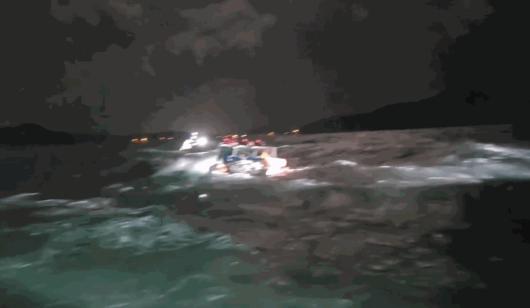 승선원이 전복된 선박 위에서 구조를 기다리고 있다. 〈사진=태안해경 제공〉 |