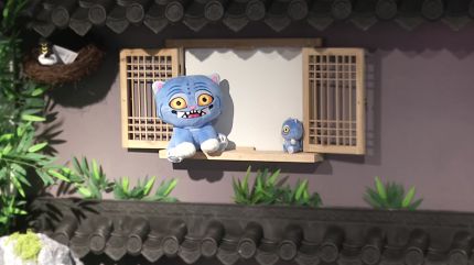 남자주인공 '진우'가 데리고 다니는 푸른빛 호랑이 '더피'가 옥상에 걸터 앉아 있습니다.