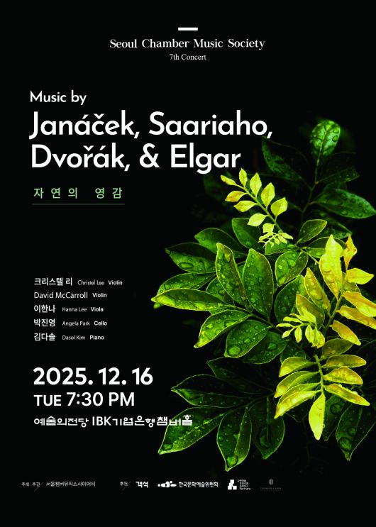서울챔버뮤직소사이어티는 오는 16일 오후 7시 30분, 예술의전당 IBK기업은행챔버홀에서 서울챔버뮤직소사이어티 일곱 번째 공연 ‘자연의 영감’을 개최한다고 밝혔다.