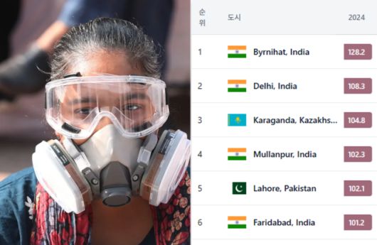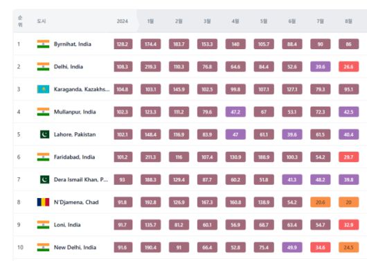 스위스 대기질 솔루션 기업 IQAir가 3일(현지시간) 발표한 ‘세계에서 가장 공해가 심한 도시(2024)’ 보고서에 따르면, 전 세계 PM2.5 오염 상위 10개 도시 중 6곳이 인도였다.