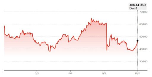 나스닥 시장에서 거래되는 시놉시스 주가는 12월3일(현지시각) 466.44달러에 거래를 마쳤다. 지난 11월28일 418.01달러에 거래를 마감한 주가는 12월1일 주요 외신들을 통해 엔비디아의 투자 소식이 전해진 뒤 11% 이상 뛰었다. 최근 5거래일 사이 상승폭은 약 16%에 달했다.