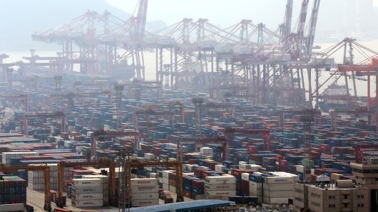 ▲ 수출입 화물이 쌓여 있는 부산항 신선대부두