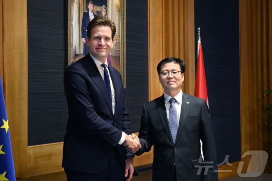 (서울=뉴스1) = 여한구 산업통상자원부 통상교섭본부장이 3일(현지시간) 네덜란드 덴하그에서 빈센트 피터 헤르트 카레만스 네덜란드 경제부 장관을 면담하고 기념 촬영하고 있다. (산업통상자원부 제공. 재판매 및 DB 금지) 2025.12.5/뉴스1urodoct2@news1.krCopyright ⓒ 뉴스1. All rights reserved. 무단 전재 및 재배포, AI학습 이용 금지.