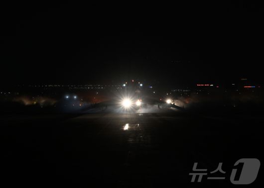 (서울=뉴스1) = 전국 곳곳에 이번 겨울 첫눈이 내린 4일 공군 수원기지에서 퇴역한 전투기 엔진을 활용해 제작된 특수제설차량 SE-88이 활주로 제설작전을 실시하고 있다. (공군 제공. 재판매 및 DB 금지) 2025.12.5/뉴스1