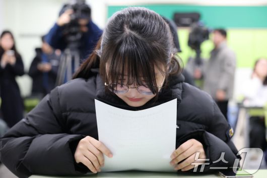 (서울=뉴스1) 오대일 기자 = 2025학년도 대학수학능력시험 성적표가 배부된 5일 오전 서울 광진구 광남고등학교에서 수능 성적표를 받은 고3 수험생들이 자신의 점수를 확인하고 있다. (공동취재) 2025.12.5/뉴스1kkorazi@news1.krCopyright ⓒ 뉴스1. All rights reserved. 무단 전재 및 재배포, AI학습 이용 금지.