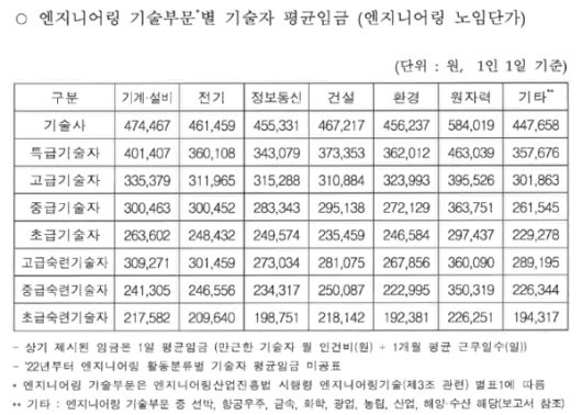 (더쎈뉴스 / THE CENNEWS 이기철 기자) 올해 엔지니어링 기술자의 하루 평균 임금은 31만원이었던 것으로 조사됐다.