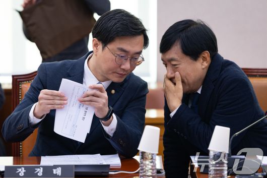 (서울=뉴스1) 유승관 기자 = 장경태 더불어민주당 의원이 5일 서울 여의도 국회에서 열린 제429회 국회(정기회) 법제사법위원회 제9차 법안심사제1소위원회에서 이성윤 의원과 대화하고 있다. 2025.12.5/뉴스1fotogyoo@news1.krCopyright ⓒ 뉴스1. All rights reserved. 무단 전재 및 재배포, AI학습 이용 금지.