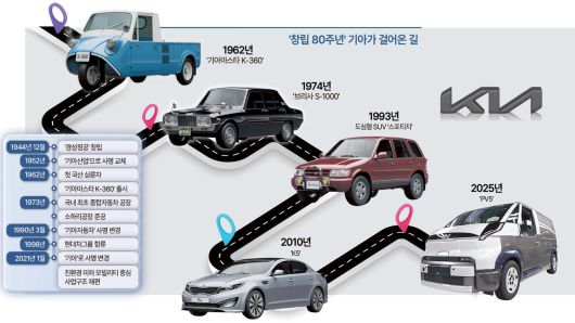 기아산업이 걸어온 길은 순탄치만은 않았다. 1980년대 자동차 산업 통폐합조치로 기아산업은 승용차 사업에서 강제 철수하게 됐다. 상용차 생산만 가능했던 시기에 기아산업은 위기를 극복하기 위해 마쓰다의 ‘봉고’를 면허생산했다. 다목적 승합차 봉고는 가족단위 고객뿐만 아니라 중소기업, 상공업자 등 다양한 계층에서 호응을 얻으며 출시 3년 만인 1984년 5월 누적판매대수 10만 대를 돌파했다.