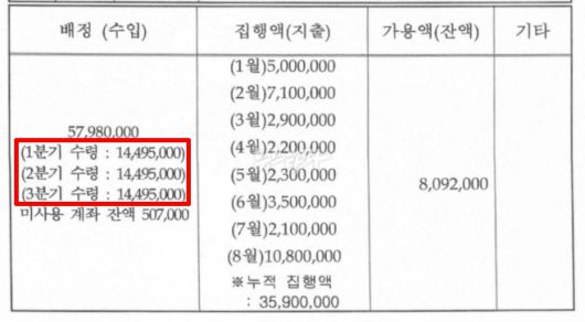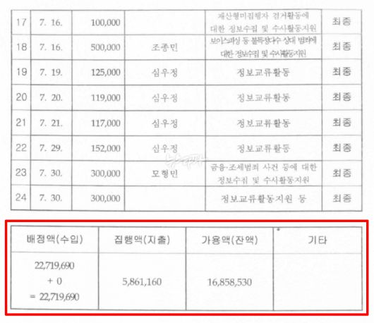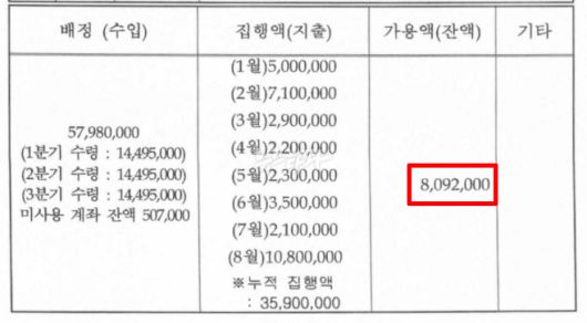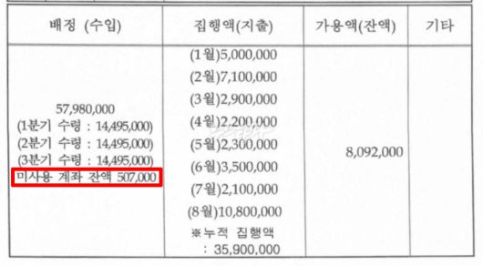 당시 취재진은 의아했다. 수입액과 지출액, 잔액, 그러니까 숫자만 적혀 있는 표를 왜 이렇게까지 감추는지 의문을 품었다.