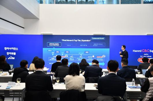 [라포르시안] 한미그룹이 4일 서울 송파구 방이동 한미 C&C 스퀘어에서 기업설명회를 열고 2030년까지 매출 5조원을 목표로 하는 중장기 성장 전략을 발표했다.