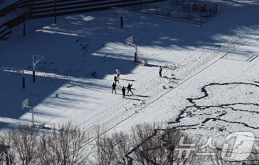 (서울=뉴스1) 구윤성 기자 = 5일 오전 서울의 한 초등학교에서 어린이들이 전날 내린 눈으로 눈싸움을 하며 놀고 있다. 2025.12.5/뉴스1kysplanet@news1.krCopyright ⓒ 뉴스1. All rights reserved. 무단 전재 및 재배포, AI학습 이용 금지.