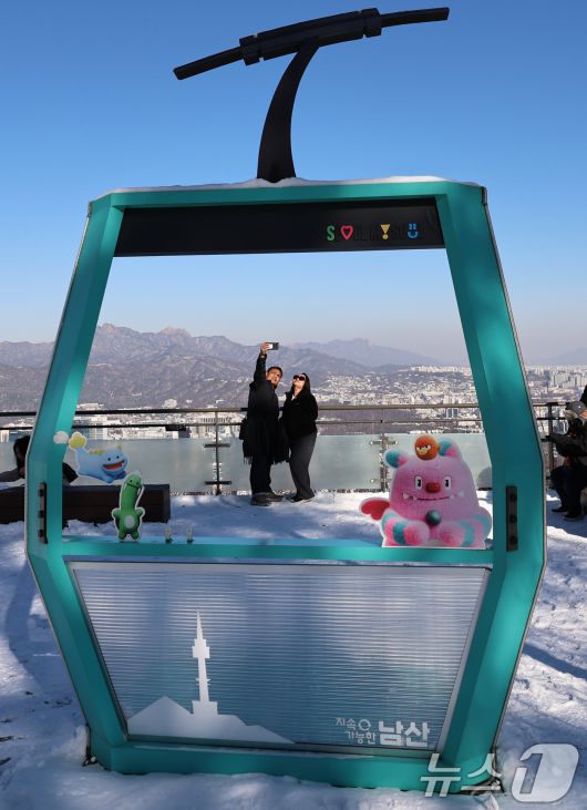 (서울=뉴스1) 구윤성 기자 = 5일 오전 서울 남산을 찾은 외국인 관광객들이 전날 내린 눈을 배경으로 스마트폰 셀카를 찍고 있다. 2025.12.5/뉴스1kysplanet@news1.krCopyright ⓒ 뉴스1. All rights reserved. 무단 전재 및 재배포, AI학습 이용 금지.