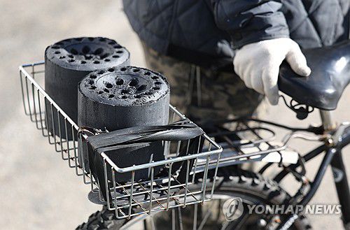 (대구=연합뉴스) 윤관식 기자 = 5일 오전 대구 서구 비산동교회 대구연탄은행에서 한 어르신이 연탄 3장을 나눔받고 있다.