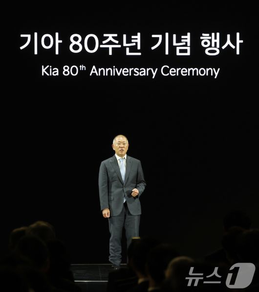 (용인=뉴스1) 김영운 기자 = 정의선 현대자동차그룹 회장이 5일 경기 용인시 처인구 기아 비전스퀘어에서 열린 '기아 80주년 기념식'에서 발언을 하고 있다. 2025.12.5/뉴스1kkyu6103@news1.krCopyright ⓒ 뉴스1. All rights reserved. 무단 전재 및 재배포, AI학습 이용 금지.