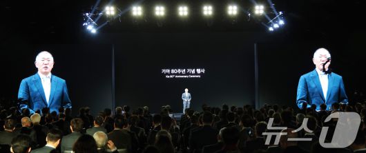 (용인=뉴스1) 김영운 기자 = 정의선 현대자동차그룹 회장이 5일 경기 용인시 처인구 기아 비전스퀘어에서 열린 '기아 80주년 기념식'에서 발언을 하고 있다. 2025.12.5/뉴스1kkyu6103@news1.krCopyright ⓒ 뉴스1. All rights reserved. 무단 전재 및 재배포, AI학습 이용 금지.