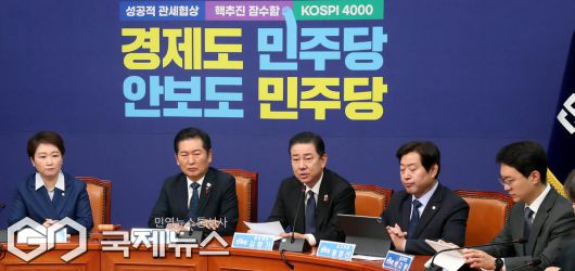 (서울=국제뉴스) 김병기 더불어민주당 원내대표가 5일 오전 서울 여의도 국회에서 열린 최고위원회의에서 발언을 하고 있다./사진=이용우 기자