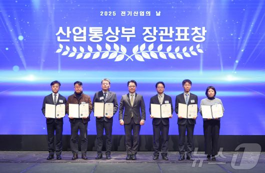 (서울=뉴스1) = 문신학 산업통상자원부 차관이 5일 오전 서울 엘타워에서 열린 '2025 전기산업의 날'에 참석해 유공자들과 기념 촬영하고 있다. (산업통상자원부 제공. 재판매 및 DB 금지) 2025.12.5/뉴스1urodoct2@news1.krCopyright ⓒ 뉴스1. All rights reserved. 무단 전재 및 재배포, AI학습 이용 금지.