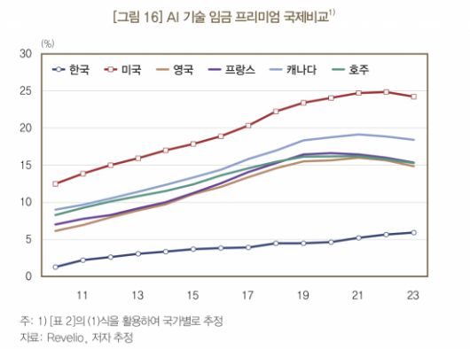 AI 기술 임금 프리미엄 "美 25% vs 韓 6%"…낮은 보상, 해외 유출 원인