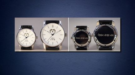시계 앞면에는 이전 사례처럼 대통령 휘장과 대통령의 서명이 들어가 있고, 뒷면에는 '국민이 주인인 나라'라는 문구가 이 대통령의 자필 글씨체로 새겨져 있습니다.