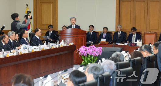 (서울=뉴스1) 장수영 기자 = 조희대 대법원장이 5일 오후 서울 서초구 대법원에서 열린 전국법원장회의에서 인사말을 하고 있다. (공동취재) 2025.12.5/뉴스1