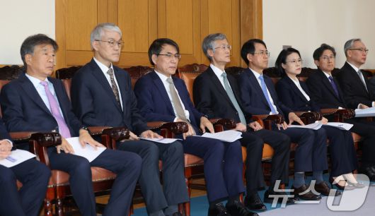 (서울=뉴스1) 장수영 기자 = 조희대 대법원장과 대법관들이 5일 오후 서울 서초구 대법원에서 열린 전국법원장회의에 참석해 자리에 앉아 있다. (공동취재) 2025.12.5/뉴스1