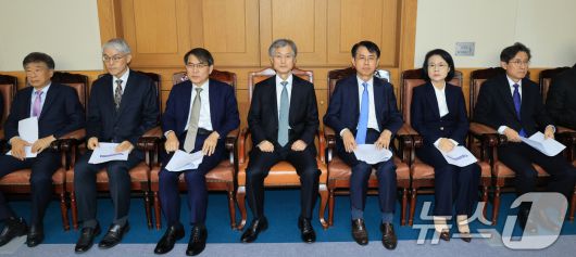 (서울=뉴스1) 장수영 기자 = 조희대 대법원장과 대법관들이 5일 오후 서울 서초구 대법원에서 열린 전국법원장회의에 참석해 자리에 앉아 있다. (공동취재) 2025.12.5/뉴스1presy@news1.krCopyright ⓒ 뉴스1. All rights reserved. 무단 전재 및 재배포, AI학습 이용 금지.
