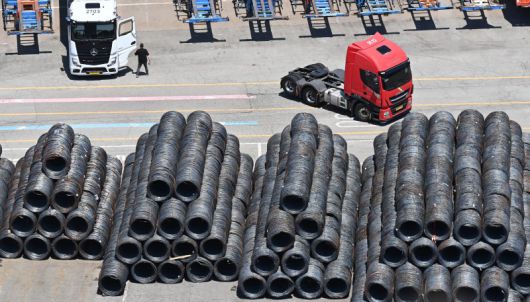 경기 평택시 포승읍 평택항 수출 야적장에 철강 제품이 쌓여있는 모습. /사진=뉴시스 |
