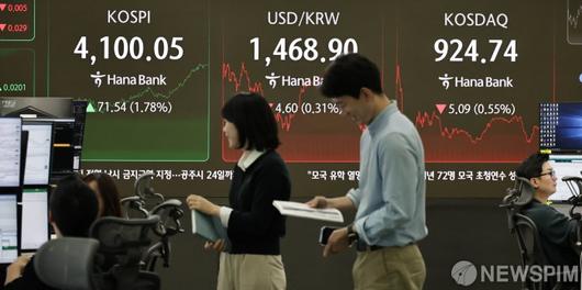 [서울=뉴스핌] 김가희 기자 = 5일 코스피 지수가 외국인과 기관의 쌍끌이 매수세에 힘입어 4100선을 회복했다.