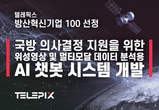 우주 AI 종합 솔루션 기업 텔레픽스는 혁신적인 인공지능(AI) 기술력을 인정받아 2025년 ‘방산혁신기업 100’에 선정됐다고 5일 밝혔다.
