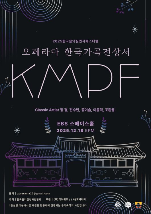'2025 한국음악실연자페스티벌(KMPF)'이 오는 12월 18일 오후 5시 경기 고양시 일산동구 EBS 스페이스홀에서 열립니다. 이번 페스티벌에서는 오페라마 '한국가곡 전상서'를 선보입니다.
