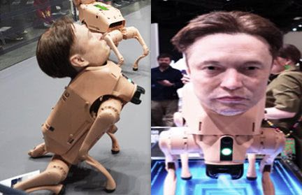 이 작품은 실리콘으로 만든 머스크·제프 베이조스·마크 저커버그·워홀·파블로 피카소 등의 얼굴을 쓴 로봇 사족보행 장치다. 일명 ‘로봇견’으로, 이들은 전시장 바닥을 자율 주행하며 사진을 찍은 뒤 이를 각 인물 스타일의 이미지로 재해석해 용변 형식으로 배출한다. 즉 워홀 얼굴의 로봇견이 용변으로 뱉은 사진은 그가 세상을 바라보는 방식을 구현하는 식이다.