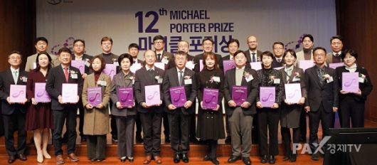 [대전=팍스경제TV] 한국산림복지진흥원은 4일 신라호텔 영빈관에서 열린 '제12회 마이클 포터상' 시상식에서 ESG경영 활동의 우수성을 인정받아 마이클 포터상을 수상했다고 밝혔다. 사진은 신라호텔 영빈관(서울 중구 동호로)에서 연성훈 한국산림복지진흥원 미래전략본부장(뒷줄 오른쪽)이 마이클 포터상을 수상하고 기념촬영을 하고 있다. [사진제공=산업정책연구원]