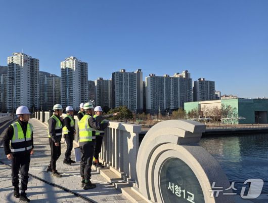 현장 점검단은 부지 내 도로, 산책로, 조형 시설물의 시공 상태를 포함해 전체적인 안전 시설물 설치 상태를 확인했다.