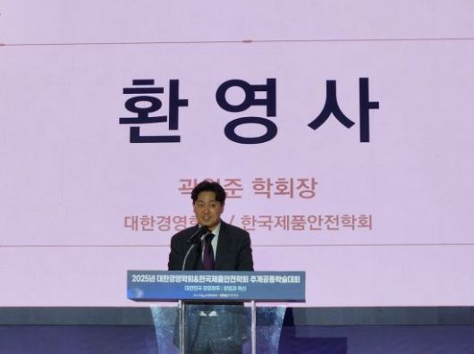 곽원준 대한경영학회 학회장이 5일 서울 강남구 삼성동 코엑스에서 열린 '2025년 대한경영학회 추계공동학술대회'에서 환영사를 전하고 있다. |