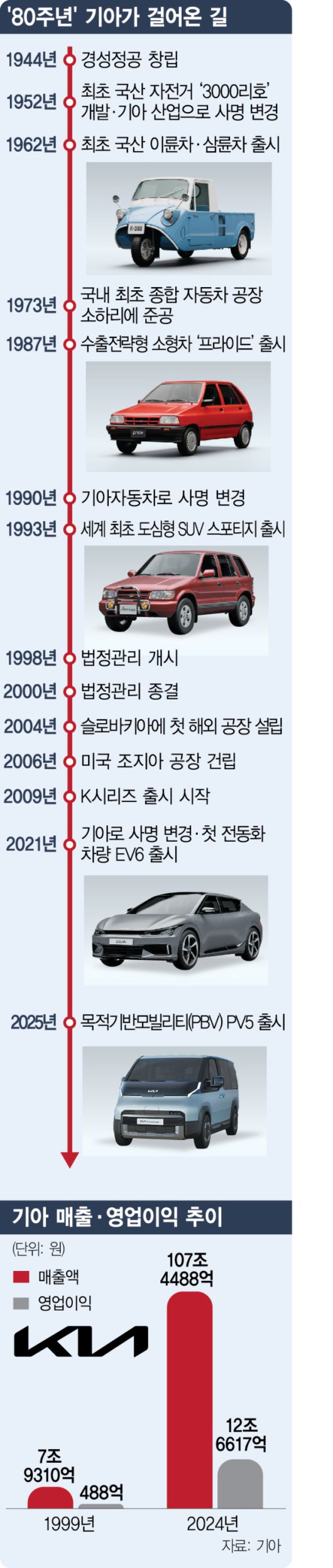 “기아(000270)의 80년은 한편의 서사처럼 위대한 여정이었습니다. 김철호 창업자와 정몽구 명예회장님이 그랬듯 우리는 앞으로도 계속 도전할 것입니다.”(정의선 현대차그룹 회장)