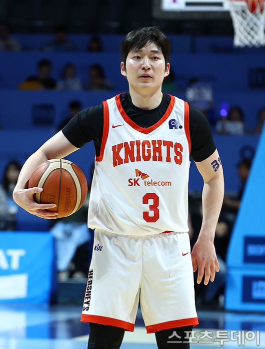 [스포츠투데이 팽현준 기자] 5일 경기도 고양소노아레나에서 열린 2025-2026 프로농구 고양 소노와 서울 SK의 경기, SK 최원혁이 공격을 하고 있다. 2025.12.05. [스포츠투데이 팽현준 기자 sports@stoo.com]